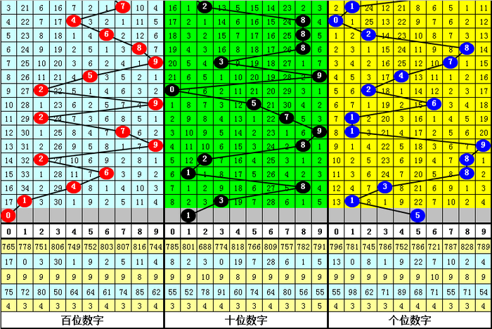三区走势:上期区间比是1:3:2,近10期三区比为20:22:18,总体上看二区表现较热,本期看好区间比为:2:2:2